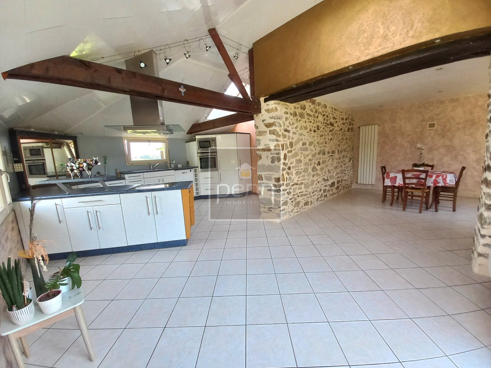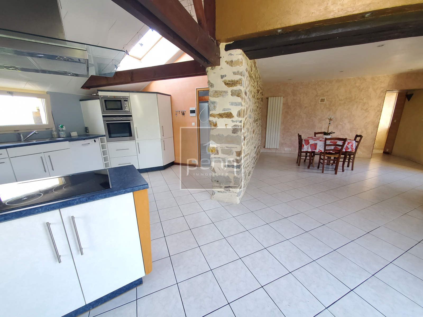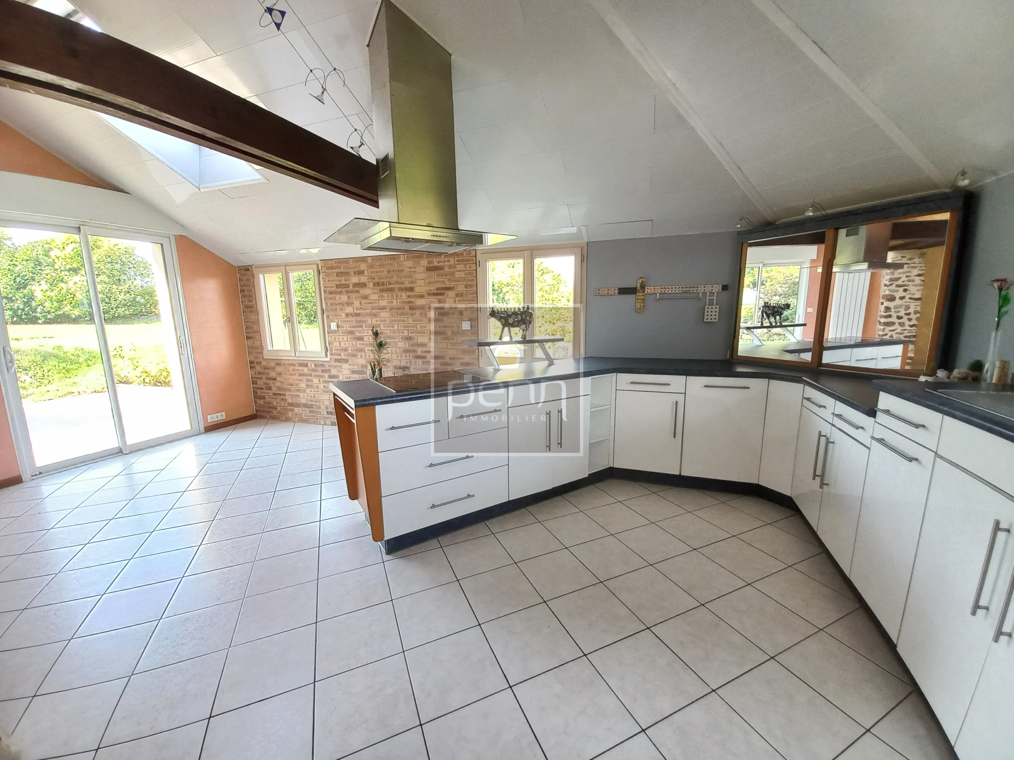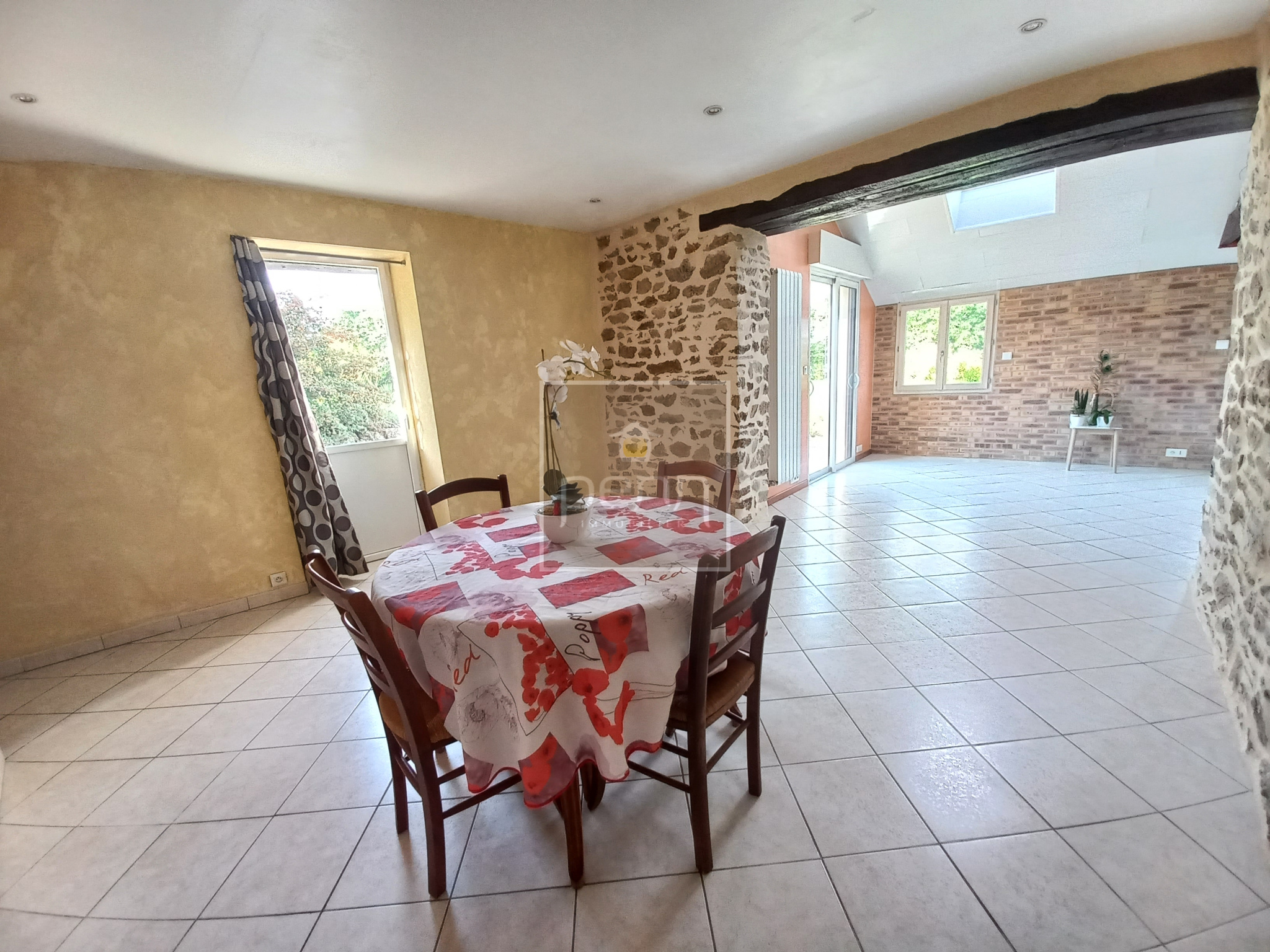 Vitré (35500)En exclusivité à l'Agence Penn Immobilier de Vitré ! Nous avons le plaisir de vous proposer cette charmante maison de campagne / longère en pierre à 5 mn seulement du centre ville de Vitré ! Vous y découvrirez au rez-de-chaussée un salon avec cheminée, une salle à manger avec de la pierre apparente ouverte sur la cuisine aménagée et équipée, une chambre, un bureau (pouvant être aménagé en dressing), un dégagement, une salle de bains (baignoire, douche et double vasque), un wc et une arrière-cuisine / buanderie / chaufferie. Le 1er étage se compose d'un palier, de 3 chambres, d'une salle d'eau / wc. Abri de jardin. Cette maison bénéficie aussi d'un chauffage central avec une pompe à chaleur. Terrain de 2200 m² environ arboré avec un portail électrique et un puits. Dans un environnement très agréable et avec une belle vue dégagée. C'est le moment de prévoir une visite !