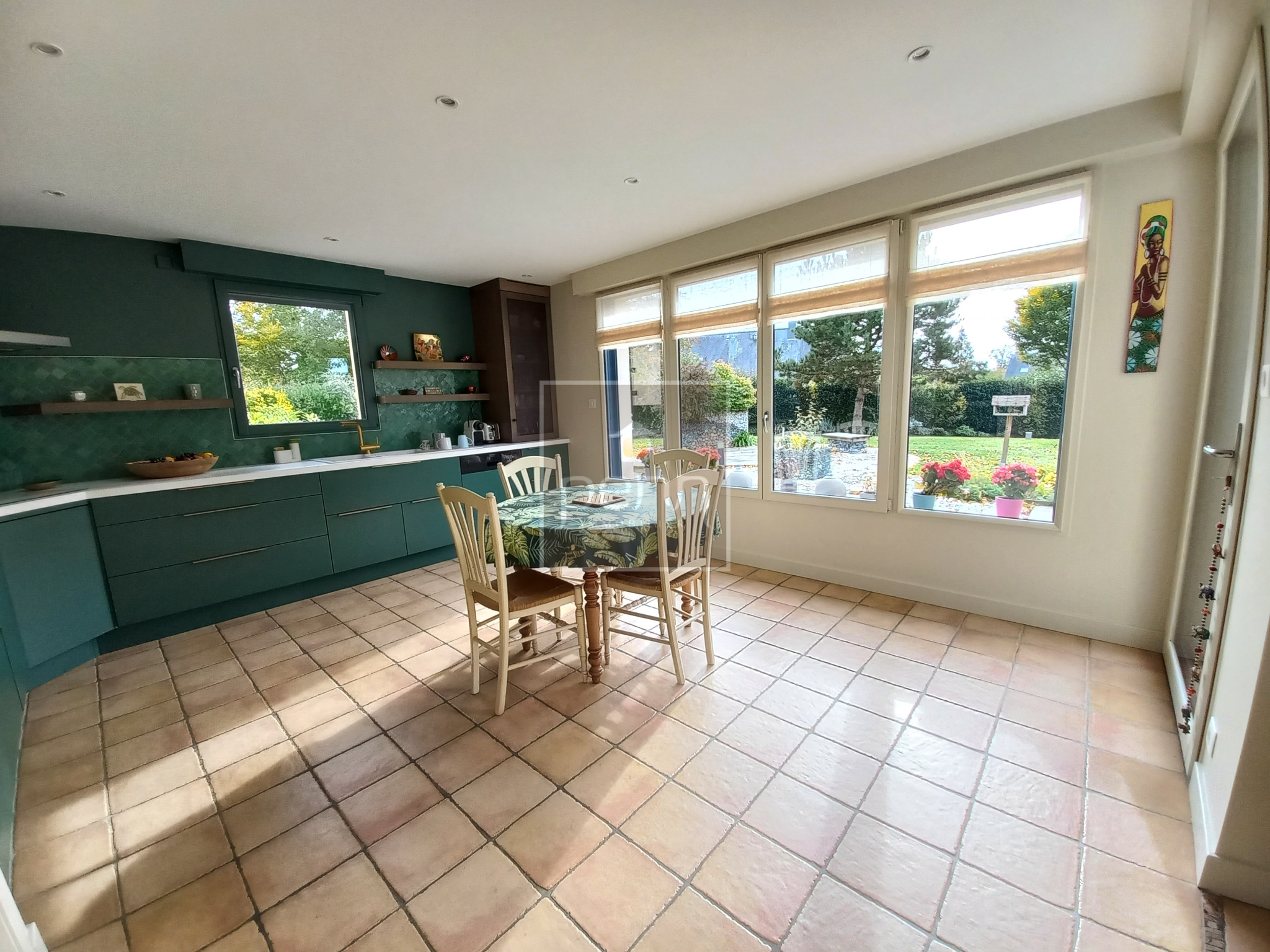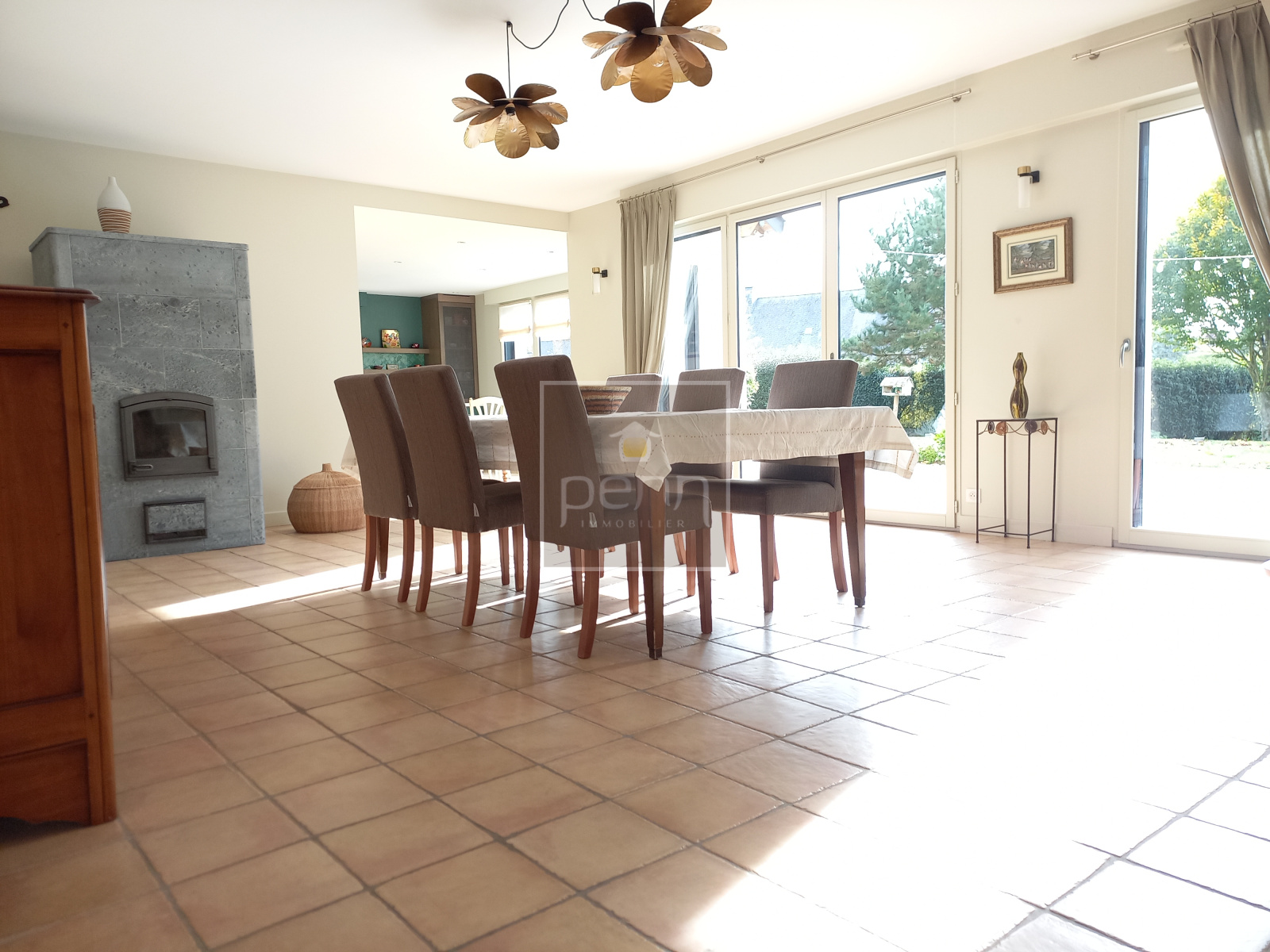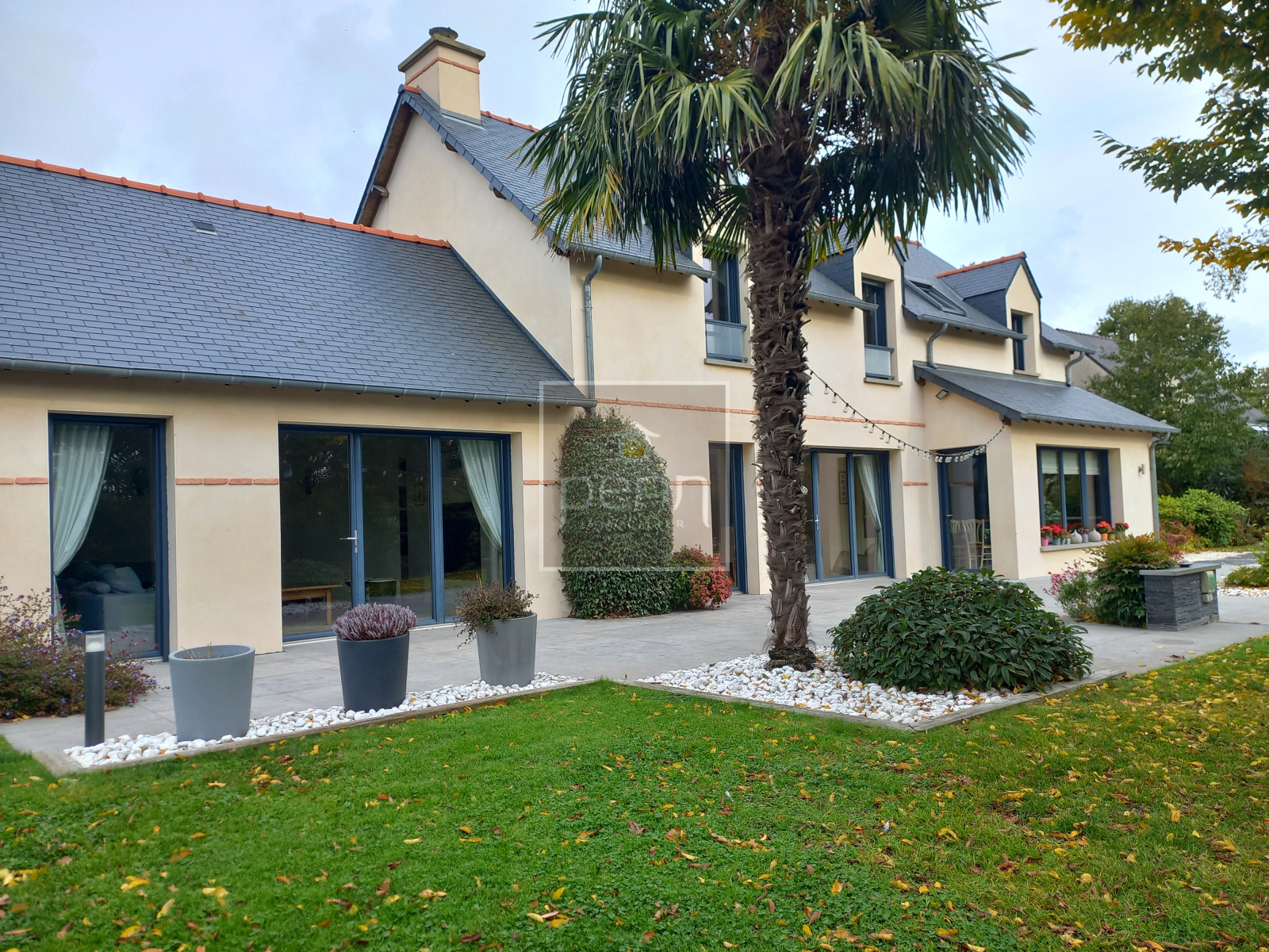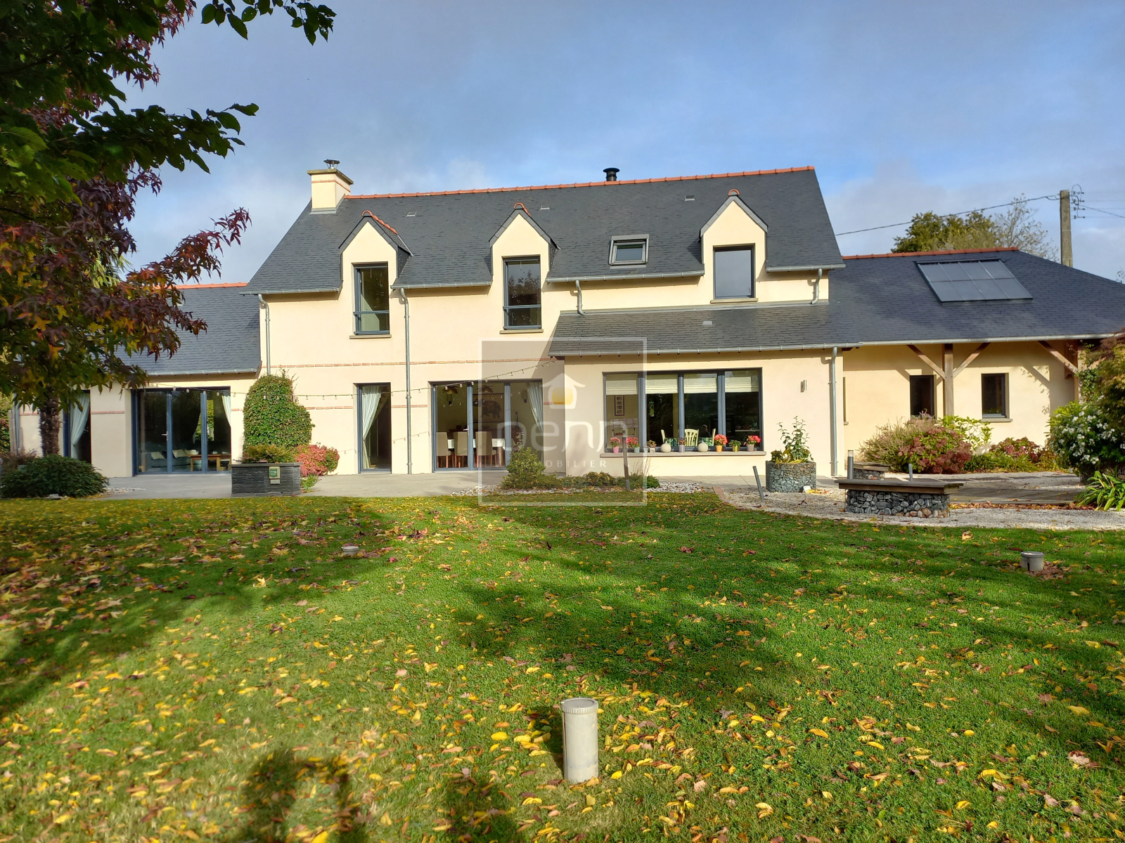 Vitré (35500)MAISON D'ARCHITECTE de 2008 disposant d'environ 210 m² habitables sur un terrain paysagé (avec beaucoup d'arbres fruitiers) de plus de 3 200 m² avec robot tondeuse. L'entrée spacieuse donne sur un espace de vie lumineux et généreux par ses volumes : séjour avec poêle de masse, salon avec cheminée, cuisine ouverte aménagée et équipée donnant sur une grande et belle terrasse exposée sud. Un dégagement conduit à 2 chambres, un dressing, une salle d'eau / wc, une arrière-cuisine / buanderie et un wc. L'étage accueille une mezzanine ainsi que 3 belles chambres, un dressing, une salle d'eau et wc. Un garage, préaux avec panneaux solaires et un atelier complètent ce bien. Ses ATOUTS : son DPE classé B, ses matériaux et prestations de qualité, ses beaux volumes, ses extérieurs soignés et aménagés avec goût !