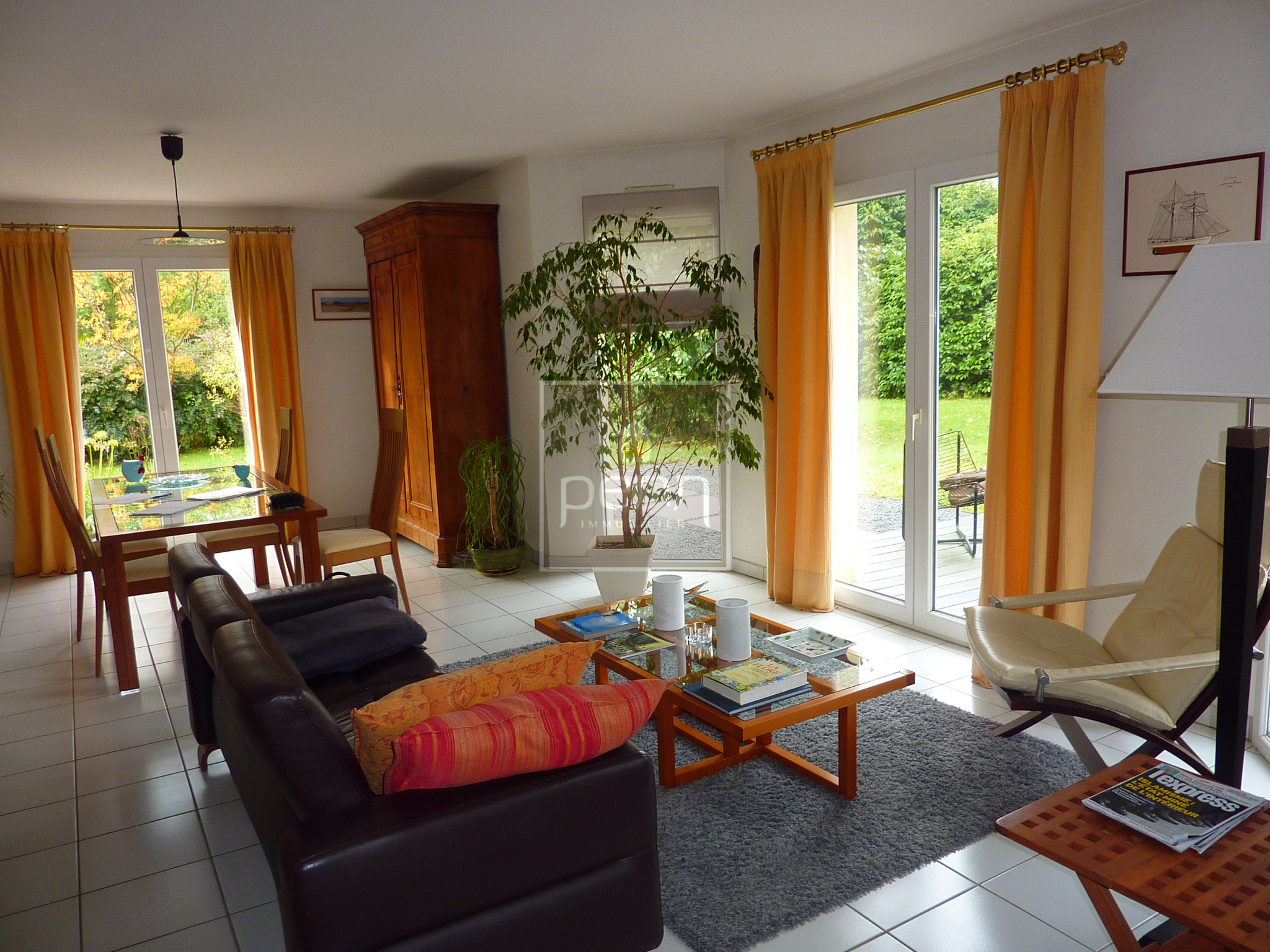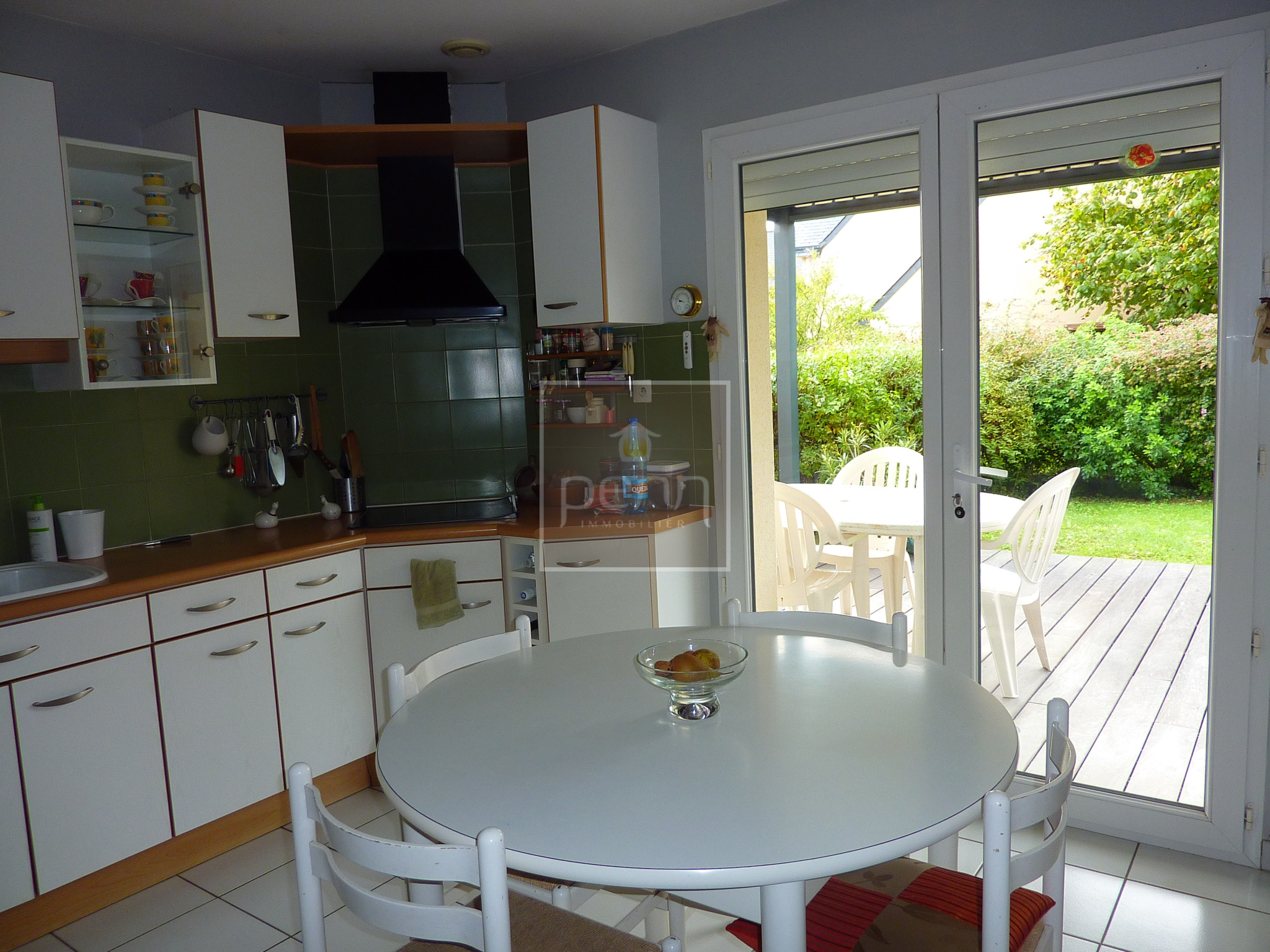NOYAL SUR VILAINE - PENN IMMOBILIER vous propose une très belle maison contemporaine, dans un environnement calme et verdoyant, proche des commerces. Elle comprend au rez-de-chaussée, un salon-séjour avec cheminée d'environ 40 m², une cuisine aménagée et équipée ouvrant sur une des deux terrasses avec pergola, une chambre, un dressing, une salle d'eau, wc séparé. A l'étage, un grand dégagement dessert quatre chambres avec placard, dont une avec sa salle d'eau, une salle de bains, un WC séparé. Sous-sol complet pouvant accueillir trois voitures, atelier, buanderie et cave. Terrain clos, arboré et sans vis-à-vis. A voir absolument .