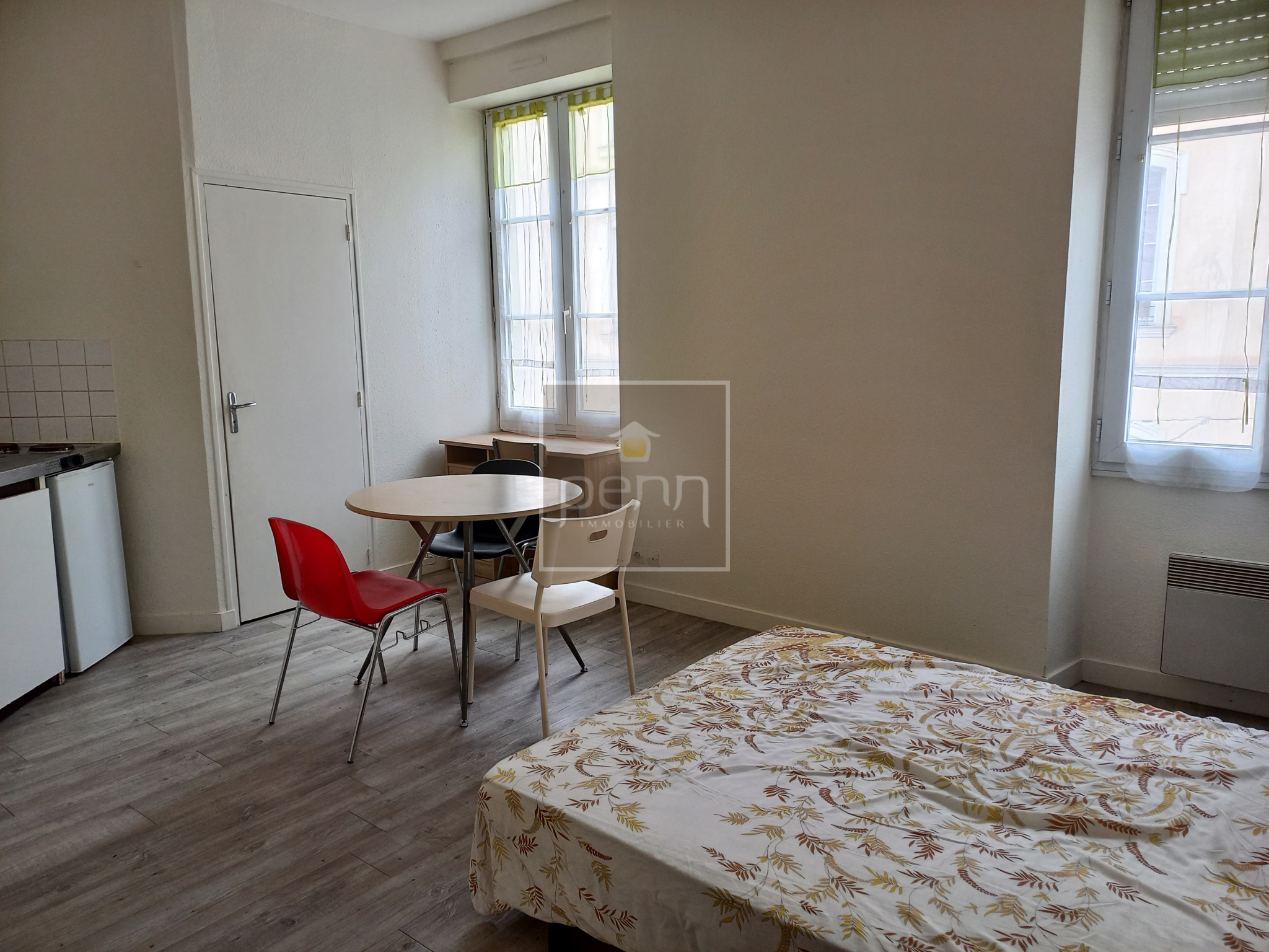 Laval (53000)LAVAL - rue des Déportés : Venez poser vos valises dans ce studio meublé offrant 19.50 m² de surface habitable et situé au 2ème étage d'un immeuble du centre-ville. Vous y trouverez une lumineuse pièce de vie composée d'un espace nuit (sommier, commode, bureau), d'un espace repas (table, chaises) et d'un espace cuisine aménagé d'une kitchenette (plaque de cuisson, four à micro-onde et réfrigérateur) ainsi qu'une salle d'eau avec WC.