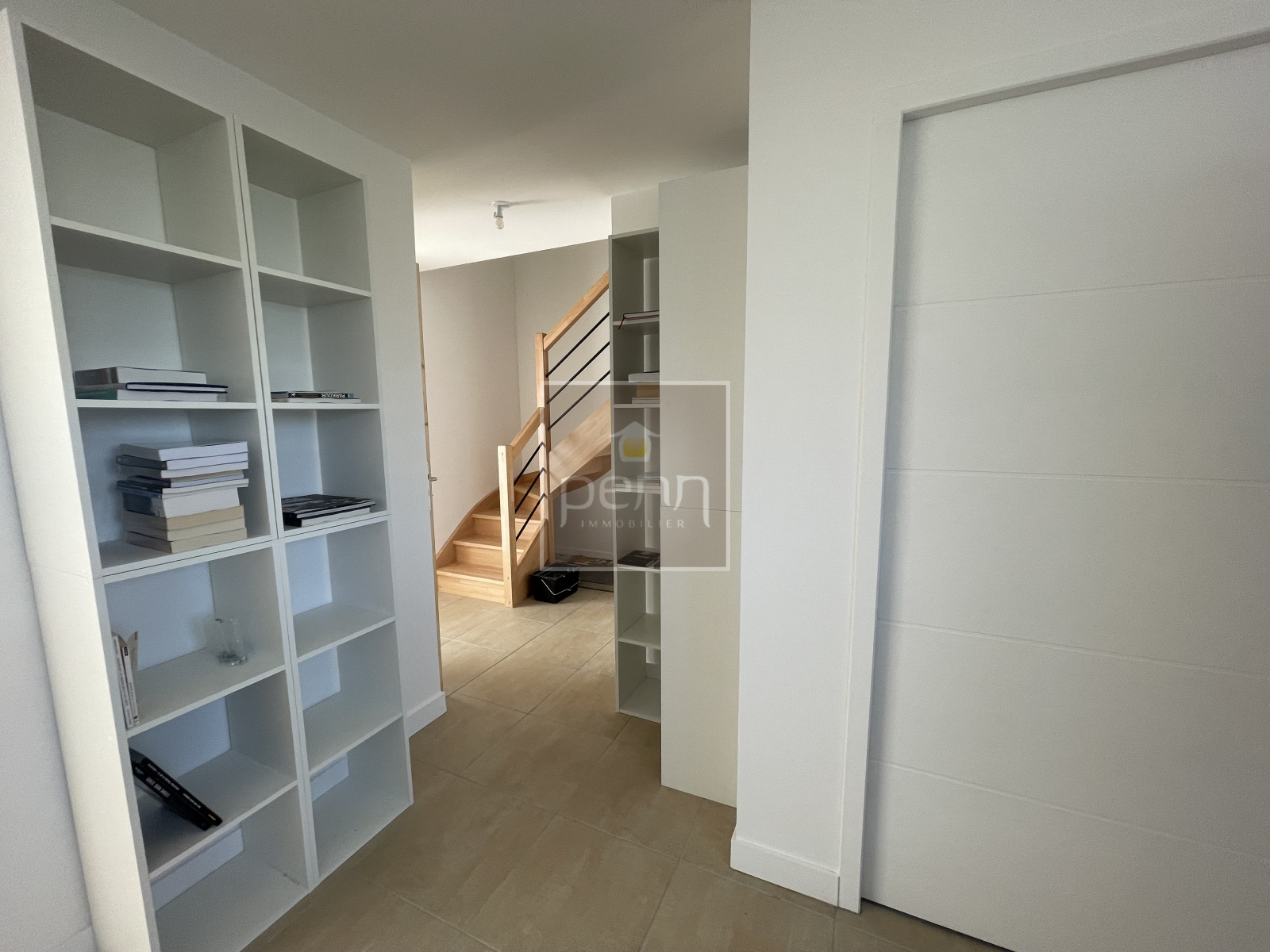 Saint-Aubin-d'Aubigné (35250)SAINT-AUBIN D'AUBIGNE : EXCLUSIVITE PENN IMMOBILIER SOUS COMPROMIS DE VENTE. Maison récente de 2023 de 5 pièces d' environ 88 m² Idéalement située et lumineuse. Elle se compose : au RDC , d'une entrée avec un espace rangement , un séjour salon , équipé d'un poêle, orienté au Sud donnant accès à une terrasse et ouvert sur une cuisine aménagée et équipée pouvant être rendue indépendante par une porte séparative à galandage . dégagement , salle d'eau, wc.indépendant. A l'étage : un dégagement dessert deux chambres ( 10 et 16 m²) , une salle de bains avec Wc , une chambre /bureau/dressing ( 6 m²) Un carport équipé pour voiture électrique et un local vélo- cellier viennent compléter l'ensemble. 2 places de parking privative. .Terrain clos d'environ 276 m2 . Prix 262 000 € FAI . Hono 4.8% TTC Prix net vendeur 250 000 €. Ref 3162.
